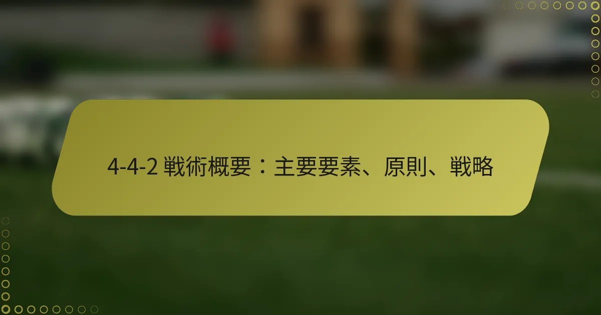 4-4-2フォーメーションは、サッカーにおいて広く使用される戦術的なセットアップであり、防御の堅実さと攻撃能力のバランスを取ることが特徴です。4人のディフェンダー、4人のミッドフィールダー、2人のストライカーで構成されるこのフォーメーションは、チームが構造的なアプローチを維持しながら、迅速なトランジションと攻撃の機会を促進することを可能にします。成功するためには、選手の役割、ポジショナルディシプリン、相手の戦略への適応に焦点を当てる必要があります。