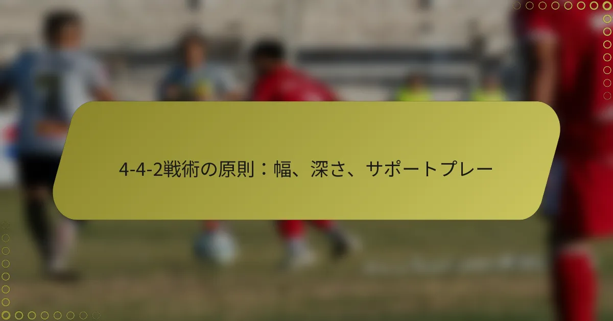 4-4-2フォーメーションにおけるサポートプレーは、選手がチームメイトをサポートするためにポジショニングを行い、ボール保持と得点機会の創出を助けることを含みます。この原則は、フィールド上でのチームワークとコミュニケーションの重要性を強調します。
