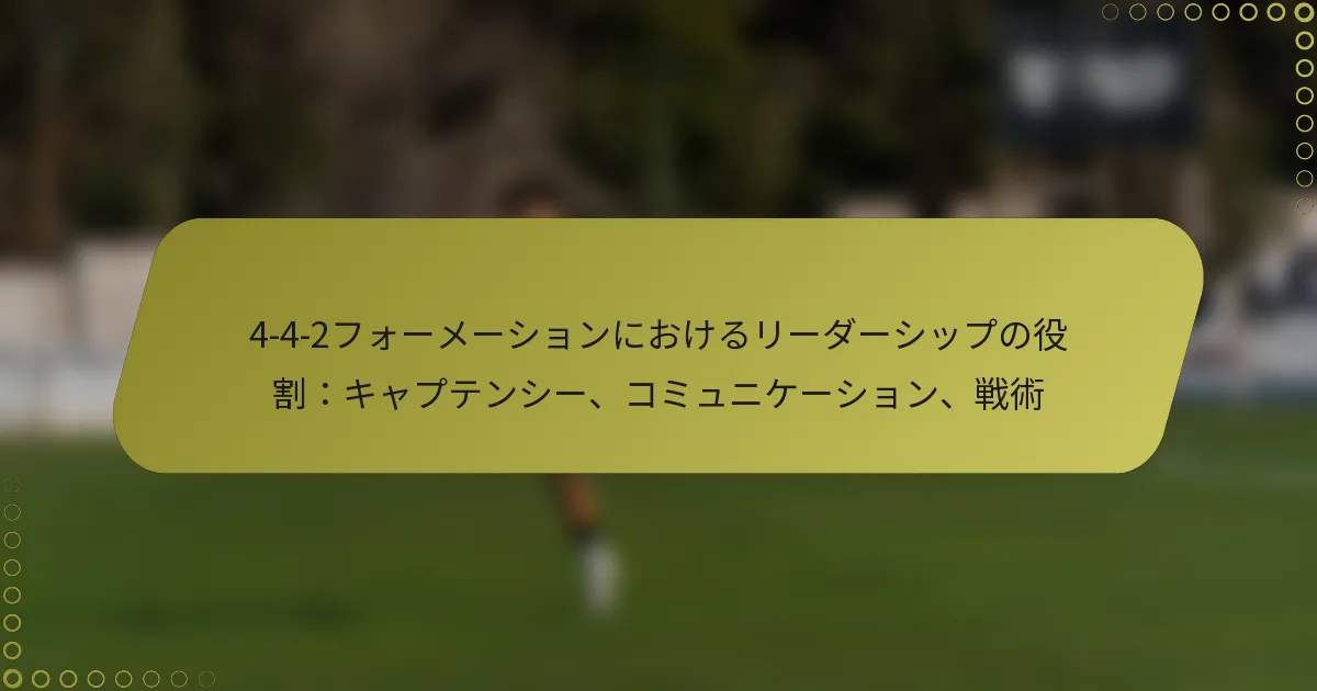 サッカーにおけるリーダーシップ役割は、フィールド上およびフィールド外でチームメイトを導く選手の責任と影響によって定義されます。これらの役割は通常、戦略的な意思決定、選手のモチベーションを高めること、試合中の効果的なコミュニケーションを確保することを含みます。4-4-2フォーメーションの文脈では、これらの役割はチームの戦術的整合性を維持するために重要です。